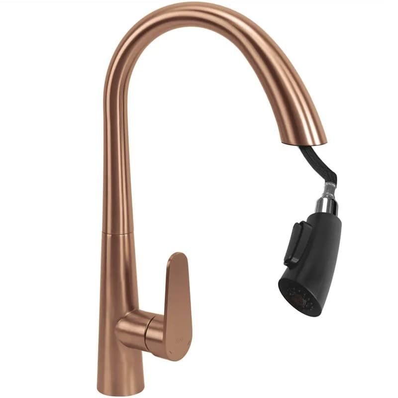 Меден матиран смесител за кухня REA ROSS BRUSHED COPPER с изтеглящ се 2-функционален чучур