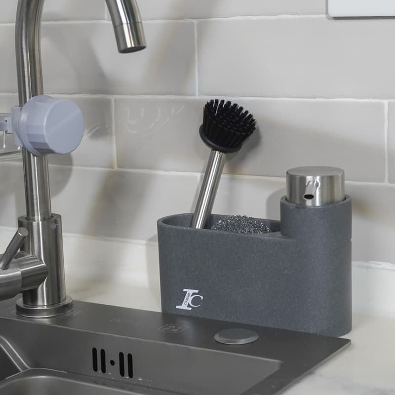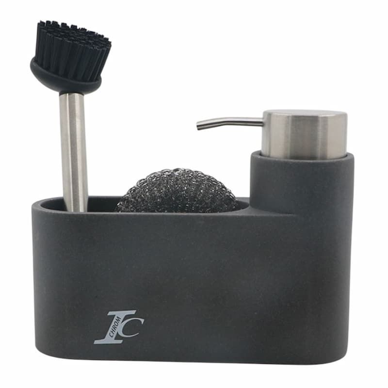 Сив дозатор за течен сапун за кухня с поставка за гъба и четка