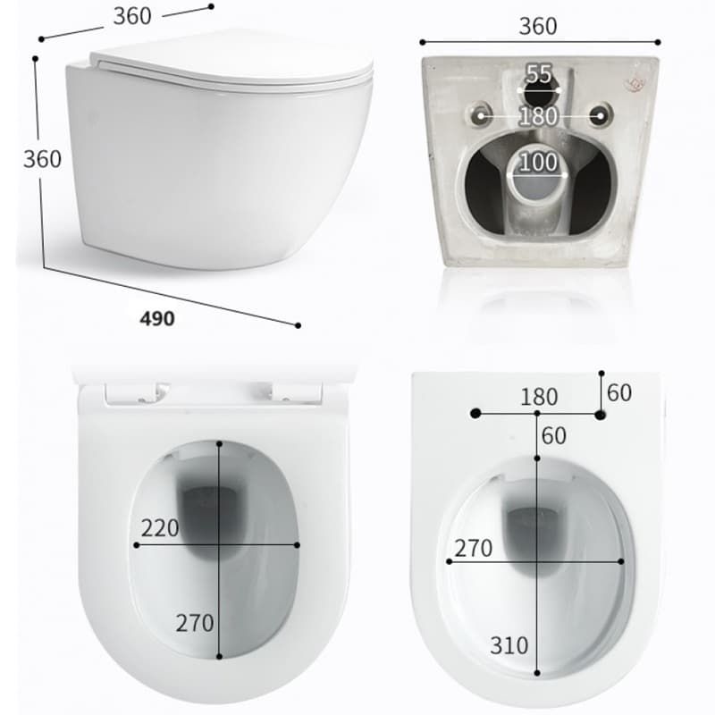 Начало Санитарен порцелан Тоалетни чинии Стенни тоалетни чинии Стенна тоалетна чиния без ринг с вградено биде ICC 4937 TORNADO